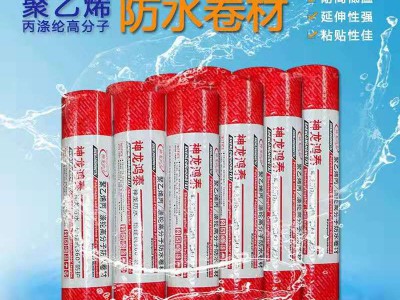 高分子聚乙烯丙(滌)綸防水卷材是采用聚乙烯、高強丙(滌)綸無紡布、紫外線隔光劑、抗老化劑等高分子原料,由自動化生產線一次性擠出成型加工制成。卷材中間層是防水層和防老化層,上下兩面是增強粘結層,牢固、可靠、無翹邊、無空鼓、雙層防水,是一種新型的防水材料。