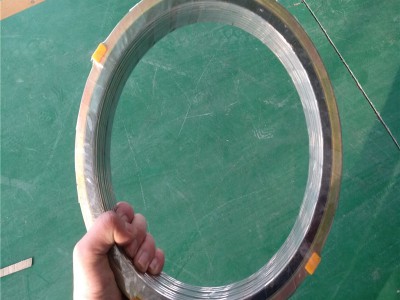 內環一般采用和纏繞鋼帶相同材料符合管道介質耐腐蝕要求通常優于管道或法蘭的材料, 根據標準要求先將金屬纏繞帶固定在內環上然后用金屬纏繞帶與石墨、石棉、四氟、無石棉等非金屬纏繞帶不斷相互交替重迭螺旋纏繞而成,在末端用點焊方式將金屬帶固定。內環又叫加強環以避免纏繞墊片的散圈。